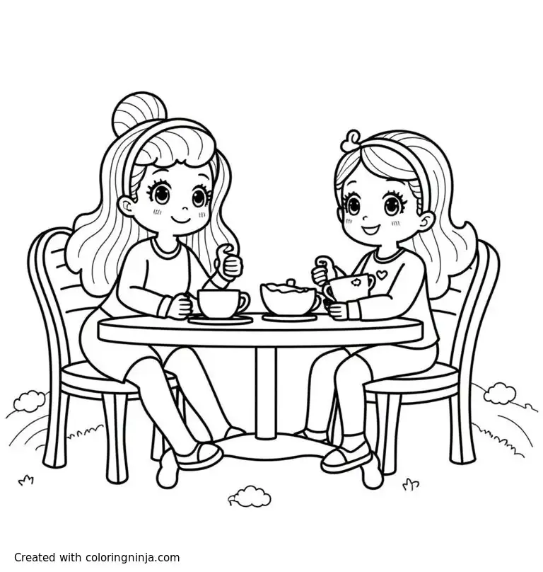 The love is dolls having a tea party coloring page