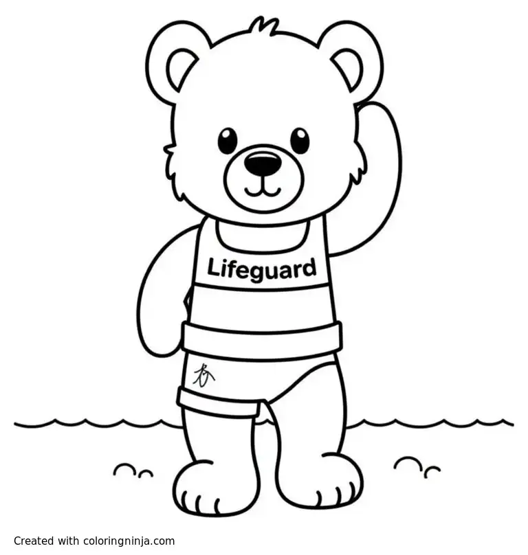 Lifeguard with teddy bear in a swim suit coloring page
