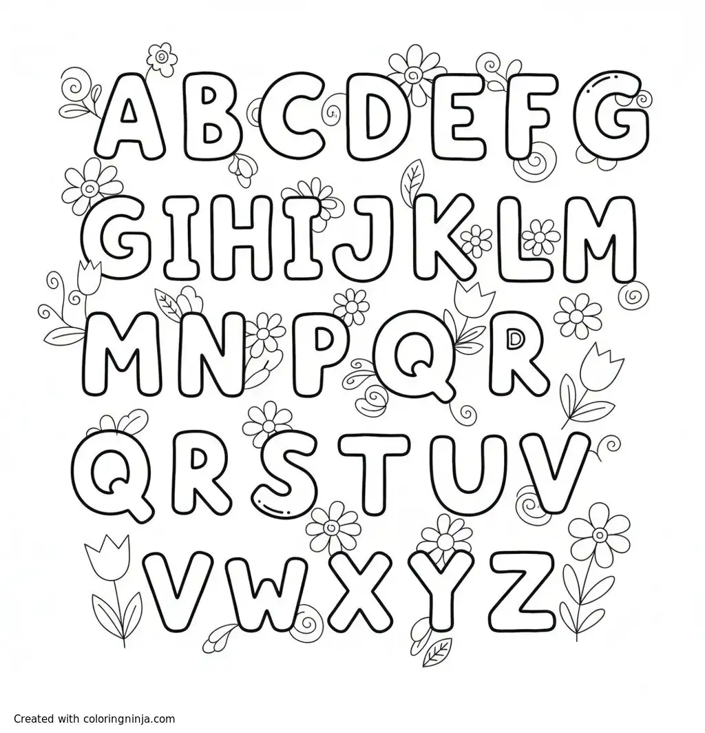 Entire alphabet with some flowers around coloring page