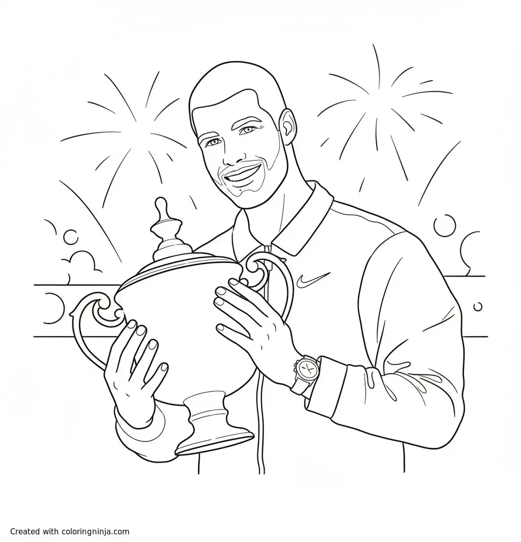 Carlos Alcaraz with US Open trophy coloring page coloring page