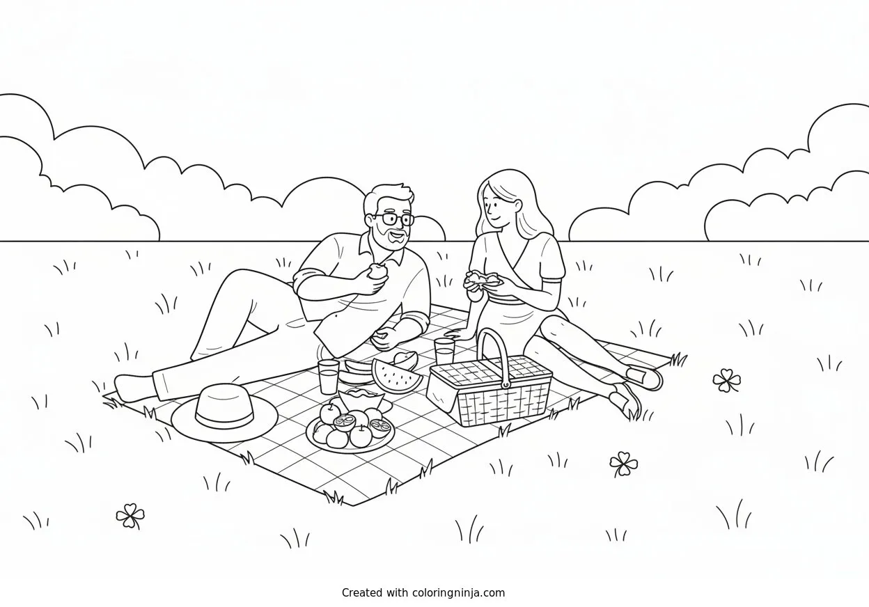 Picnic coloring page