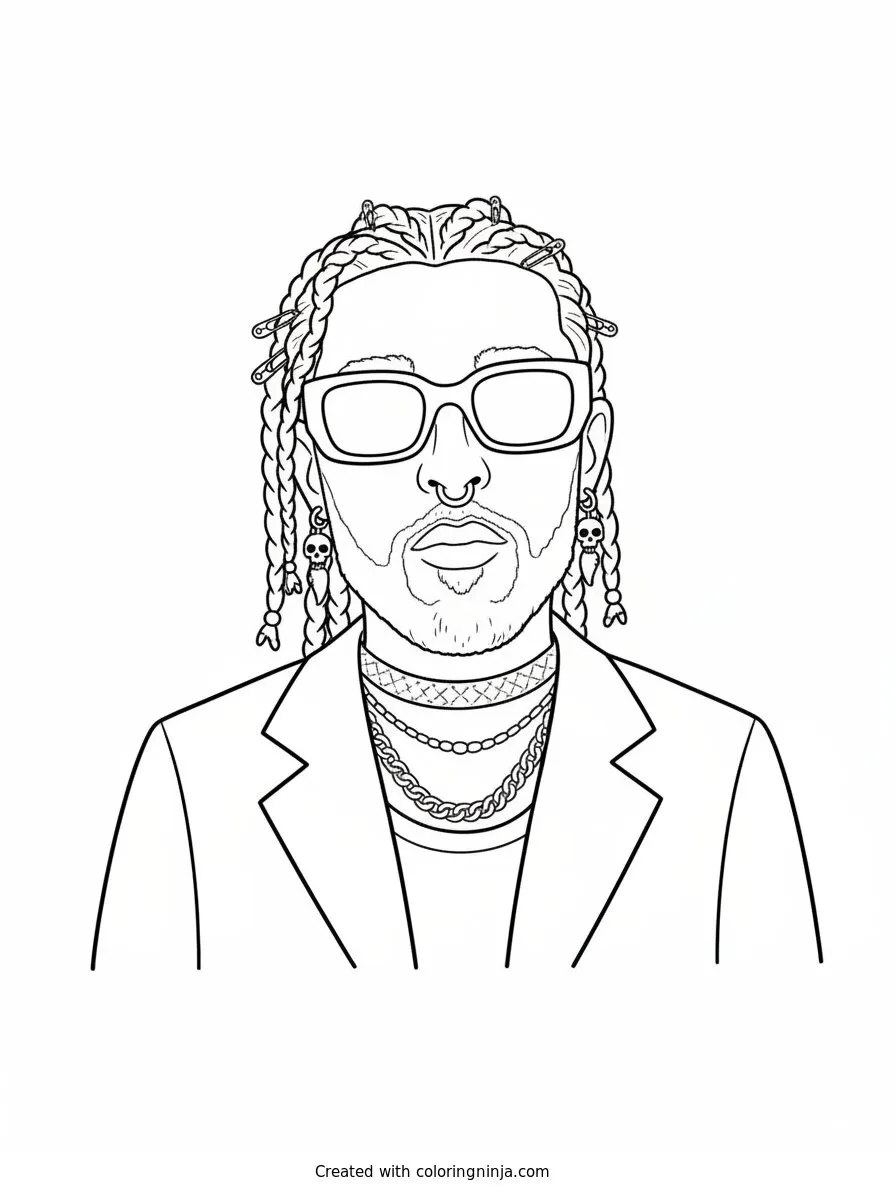 Bad Bunny with Braids and Sunglasses coloring page