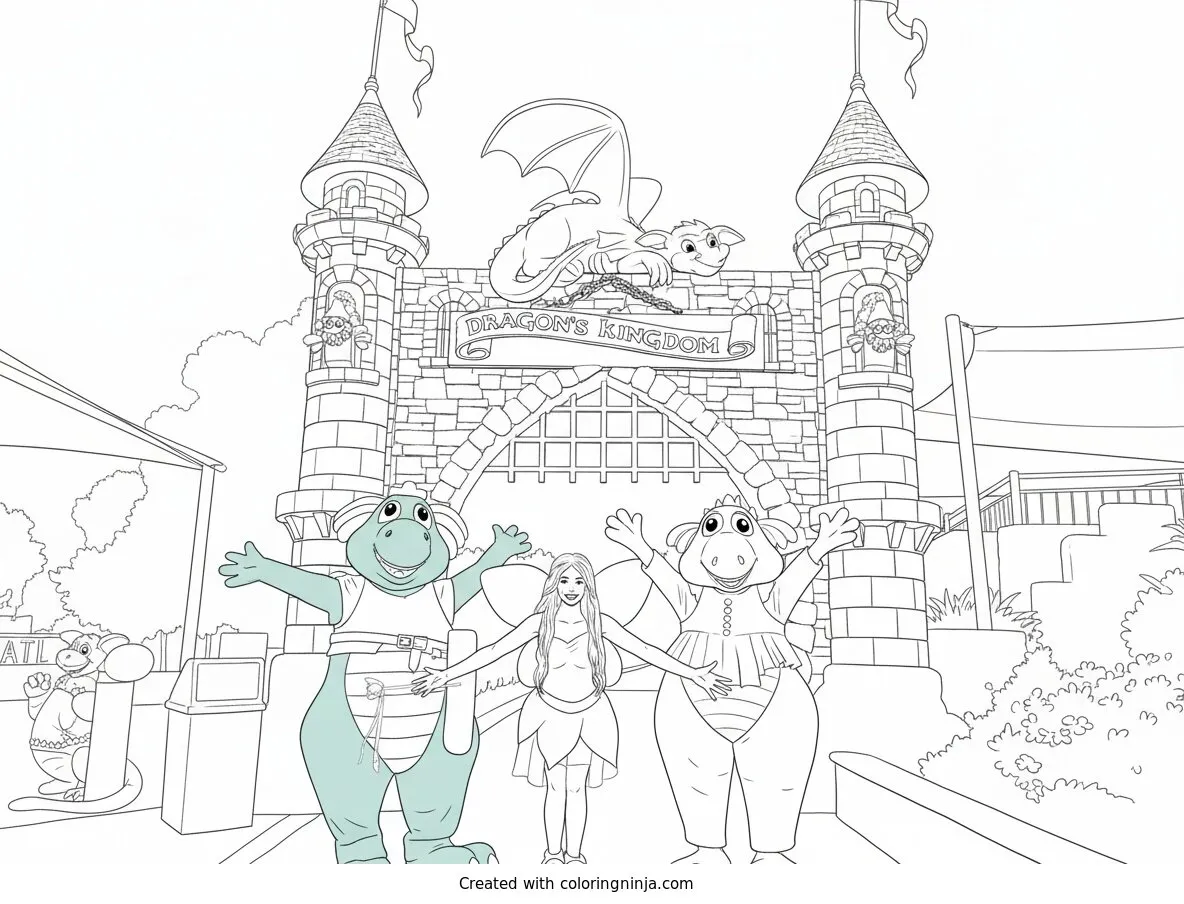Dragon Kingdom Fairy and Mascots coloring page