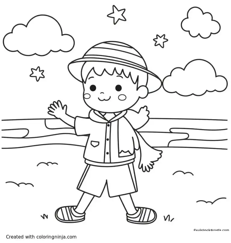 Boy on the beach coloring page