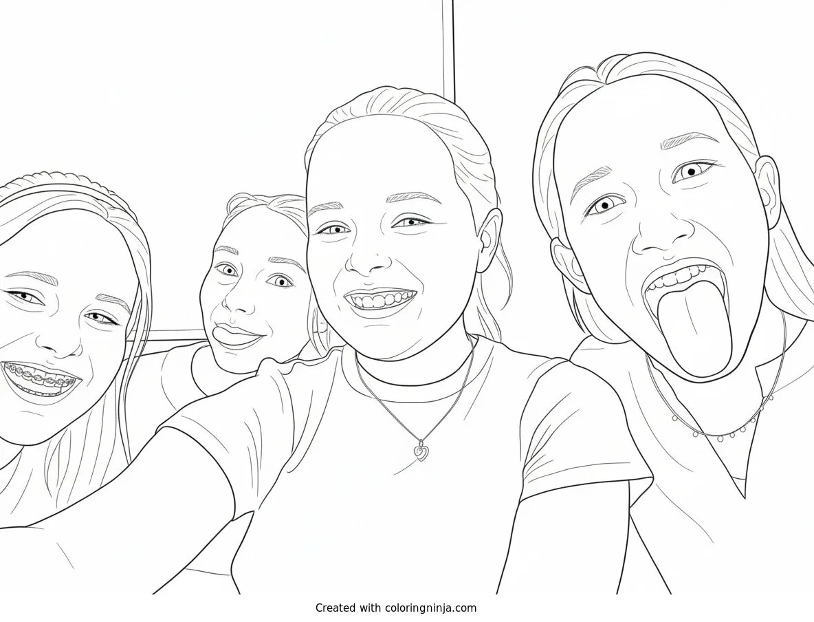 Silly Girls Posing for a Selfie coloring page