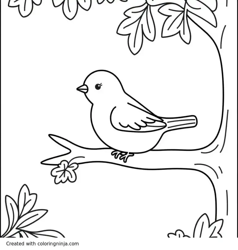 A bird resting on a tree. (Difficult) coloring page