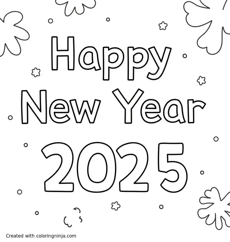 Happy new year 2025 coloring page