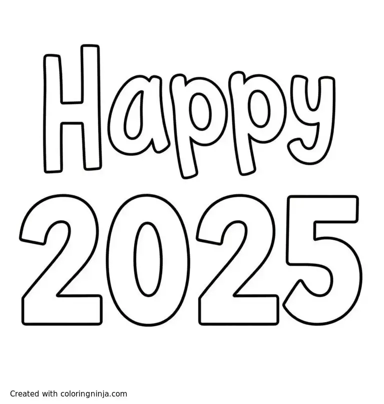 Happy 2025 coloring page