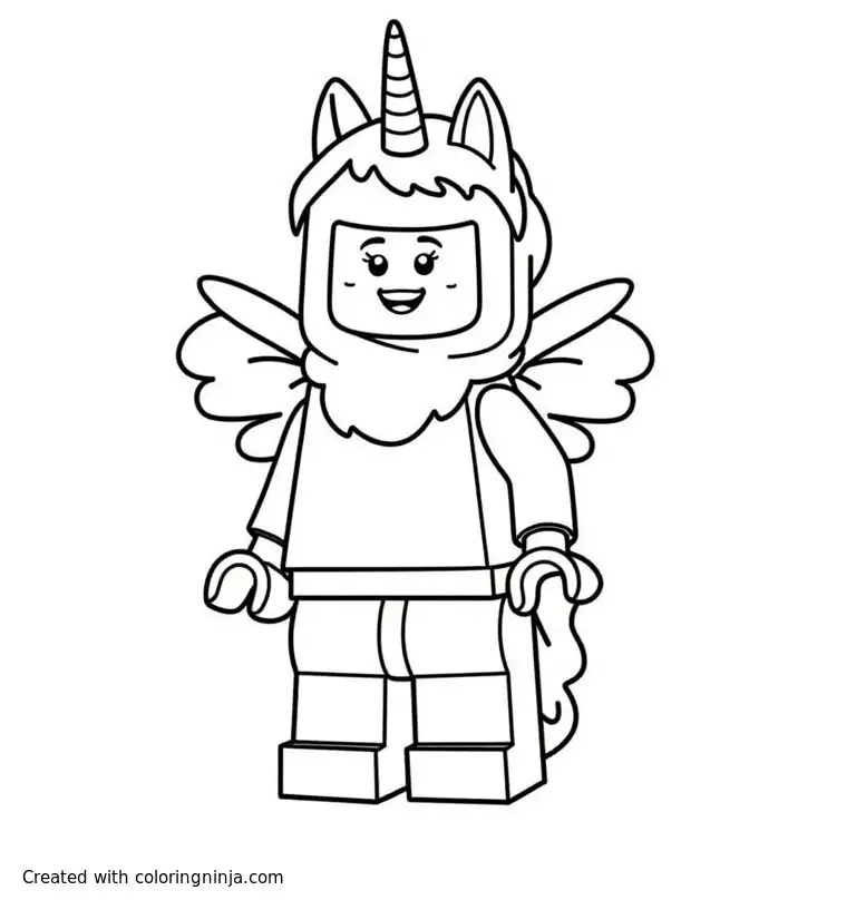 A Lego figure dressed in a Lego alicorn costume. coloring page