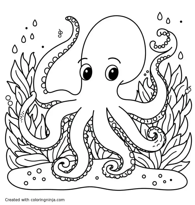 An octopus dancing with a squid in the Great Barrier reef coloring page
