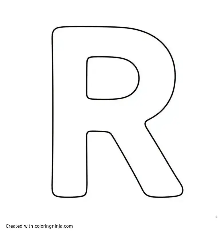 A letter "R" outlined with dashed line coloring page