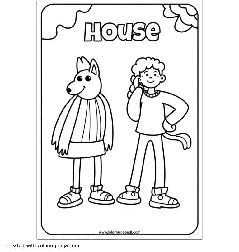 Create 4 separate teenage colouring in sheets for the following house groups Halstead Gooch Moffat Prince coloring page