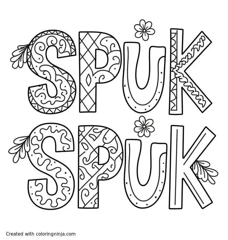 Letters S P U K full of letters and mandalas coloring page