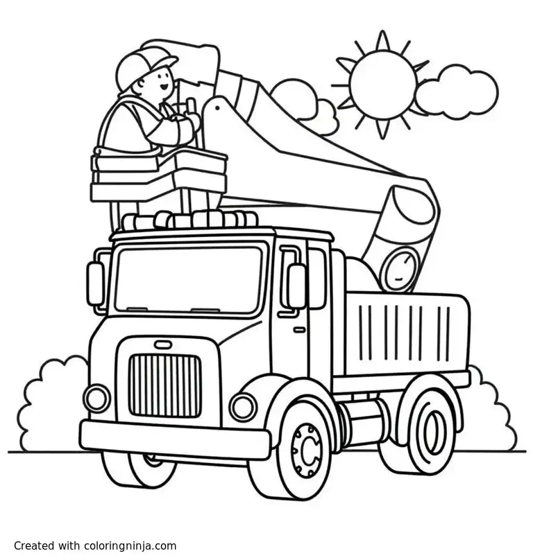 A Truck With A Cherry Picker Lifting A Worker To Power Lines coloring page