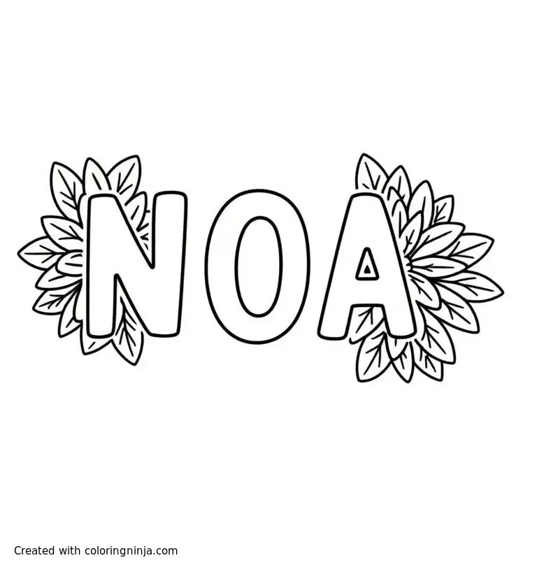 The text "NOA" with flowers around the letters coloring page