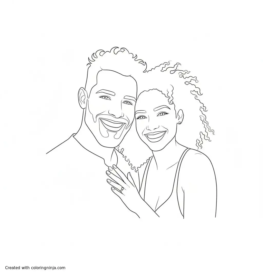Couple smiling on the beach. coloring page