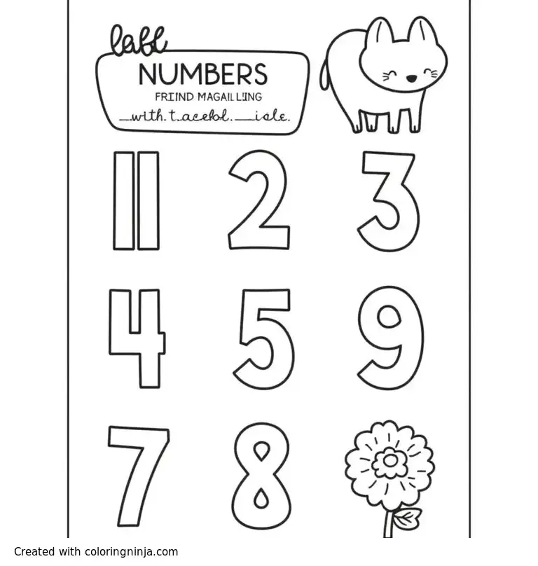 Printable Numbers from 0 to 9 with Traceable Lines coloring page