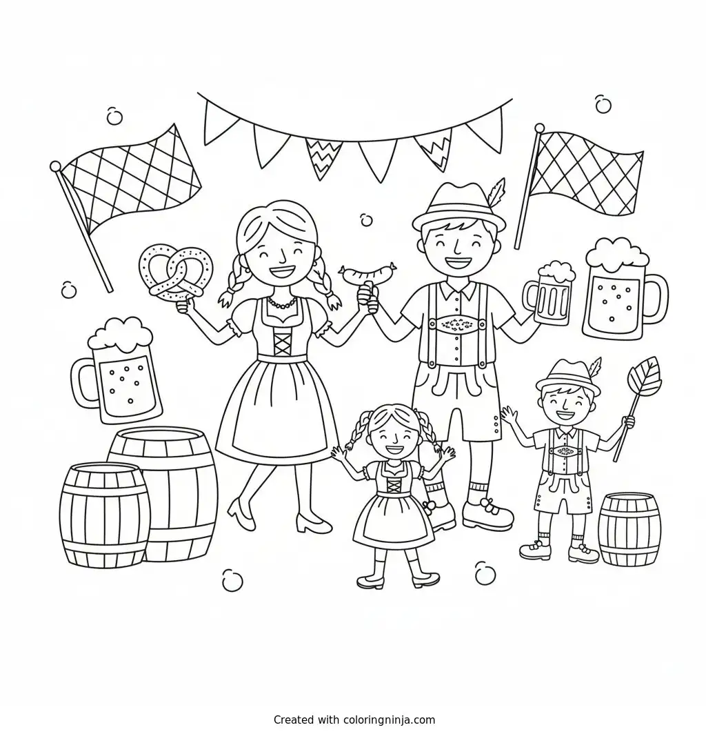 Oktoberfest family party coloring page