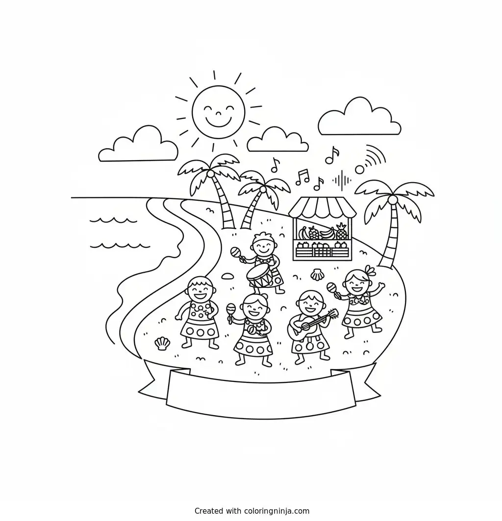 Boriken,a beautiful island in the carbbean sea...with warm beaches,good food,vibrant music and wonderful people coloring page