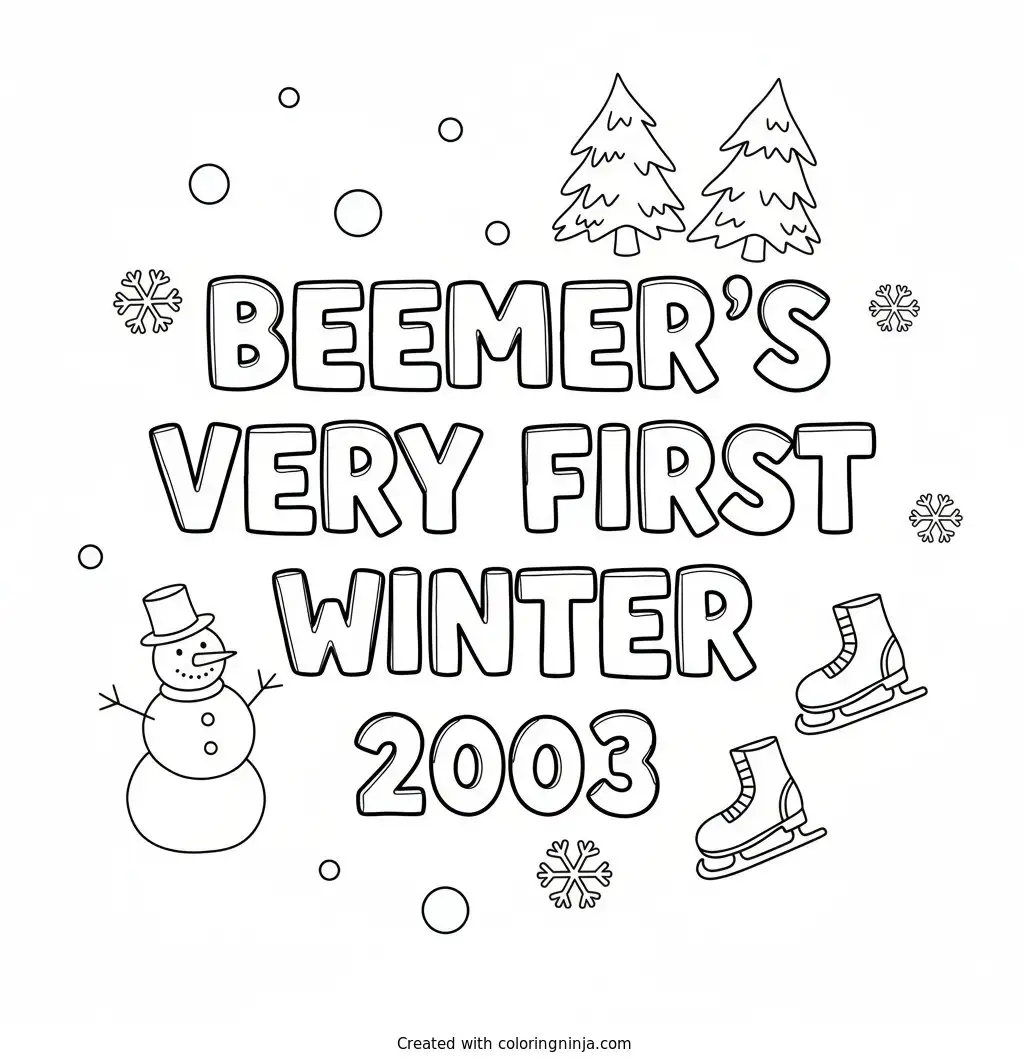 Beemer's Very First Winter 2003 Text Logo without any pictures of humans, without any pictures of animals, without any pictures of birds, and without any pictures of insects. coloring page