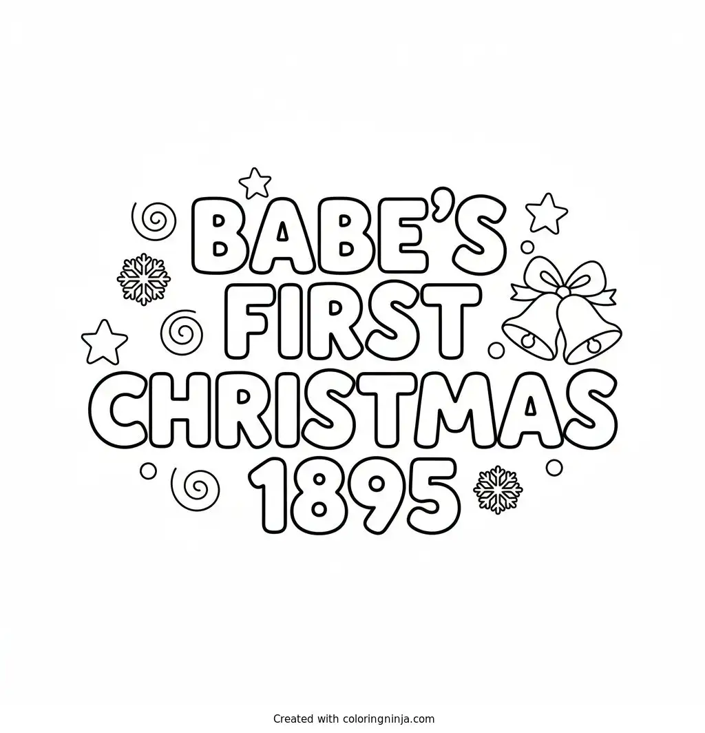 Babe's First Christmas 1895 Text Logo without any pictures of humans, without any pictures of animals, without any pictures of birds, and without any pictures of insects. coloring page