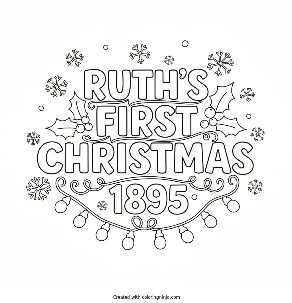 Ruth's First Christmas 1895 Text Logo without any pictures of humans, without any pictures of animals, without any pictures of birds, and without any pictures of insects. coloring page
