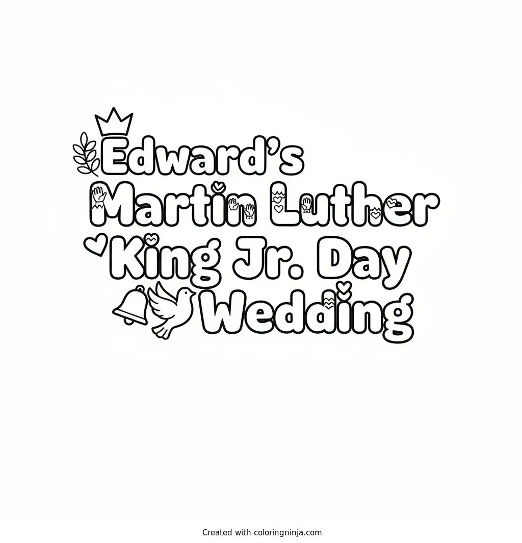 Edward's Martin Luther King Jr. Day Wedding Text Logo without any pictures of humans, without any pictures of animals, without any pictures of birds, and without any pictures of insects. coloring page