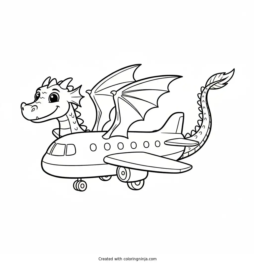 Dragon combined with an airplane coloring page