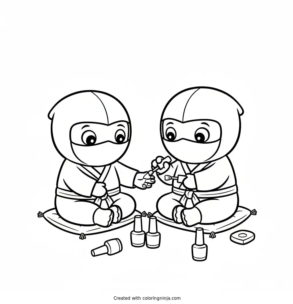 Two ninjas getting their fingernails painted coloring page
