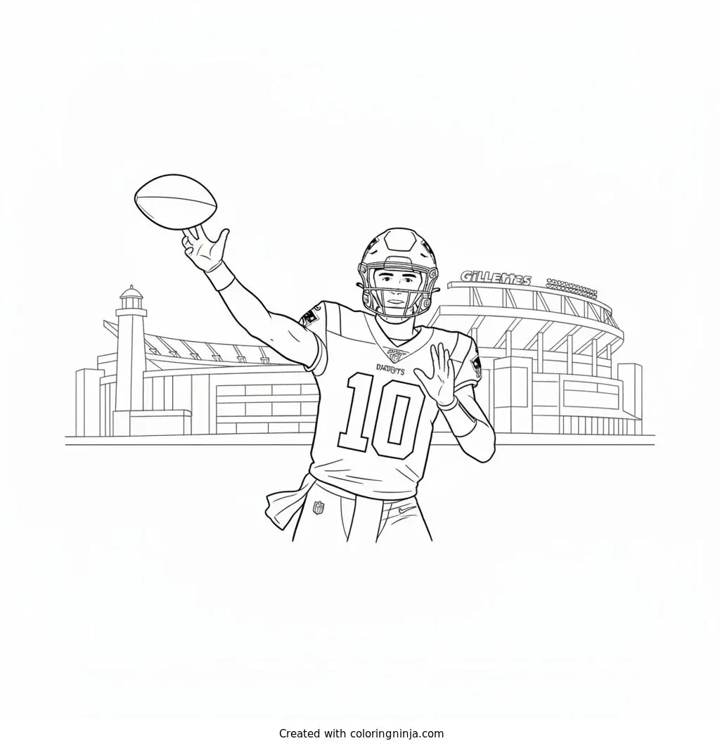 Drake Maye Throwing a pass at Gillette stadium Coloring page coloring page