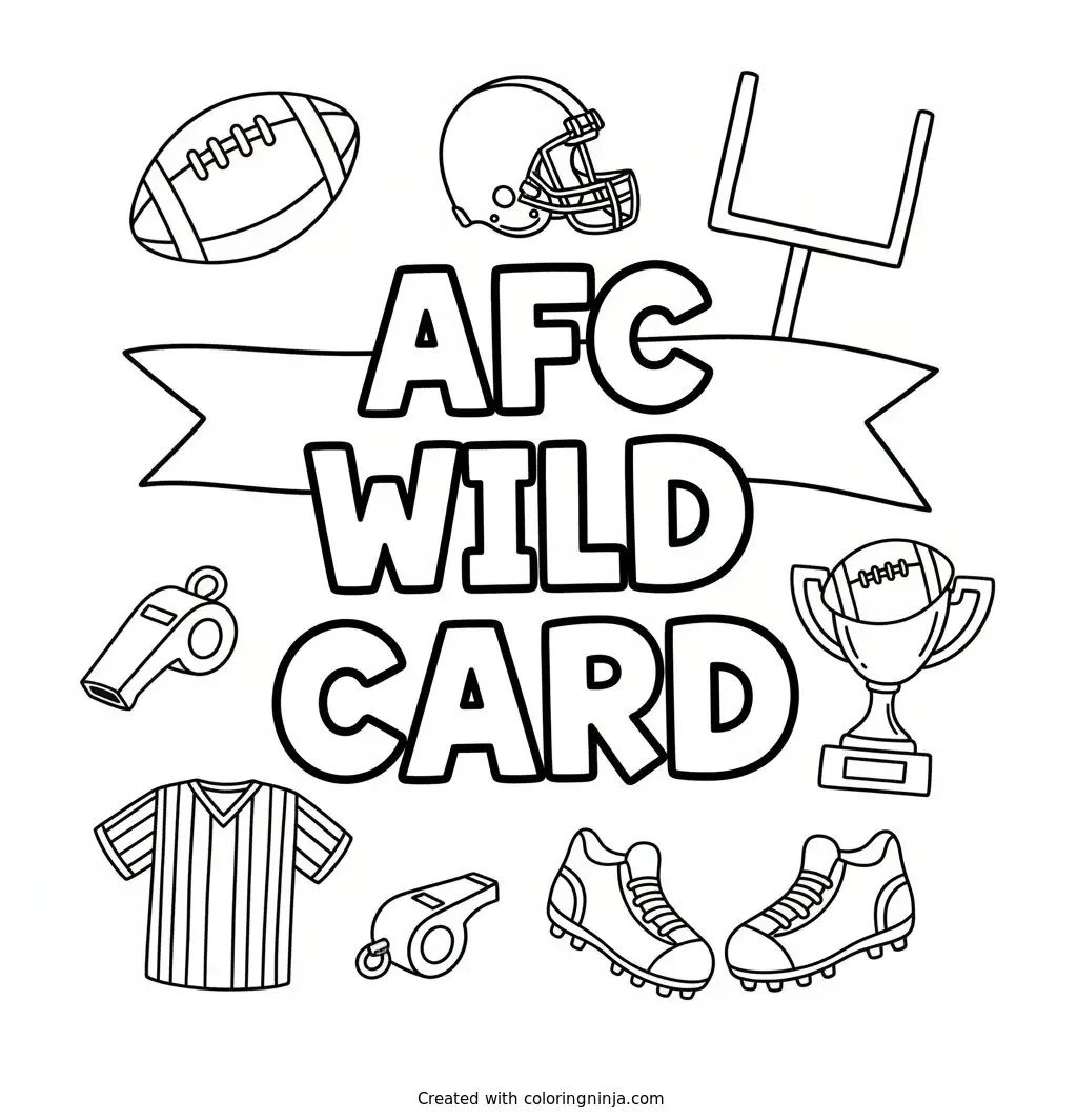AFC Wild Card in big blocky letters with football things all around coloring page