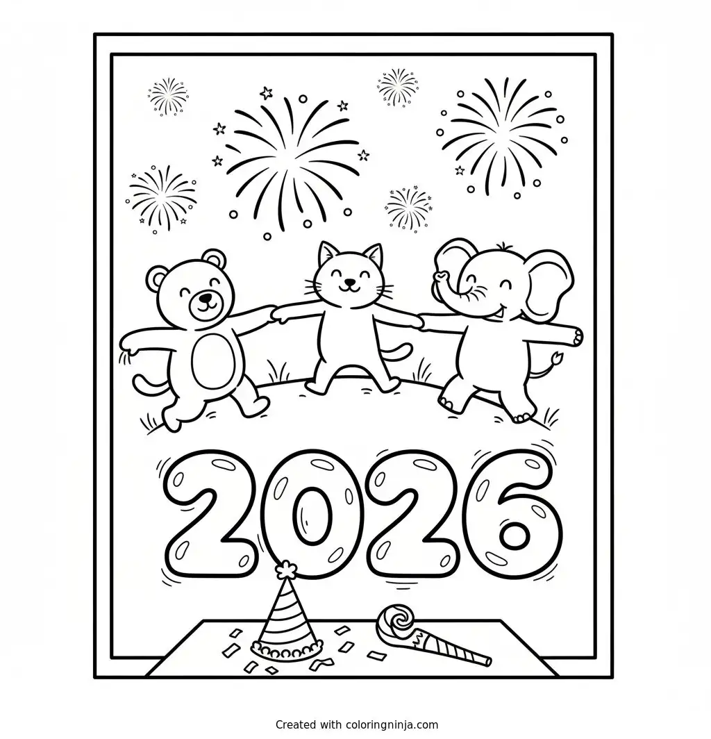 Happy New Year 2026 coloring page